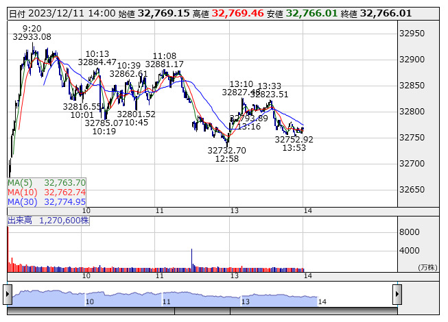 【市況】14時の日経平均は461円高の3万2768円、東エレクが70.93円押し上げ
