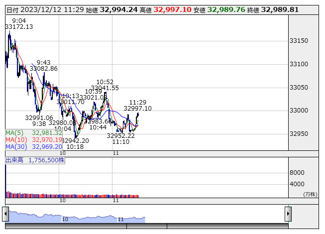 【市況】日経平均12日前引け=続伸、191円高の3万2983円