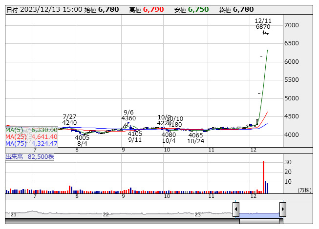 楽天地 <日足> 「株探」多機能チャートより■財務省 : 12月13日受付