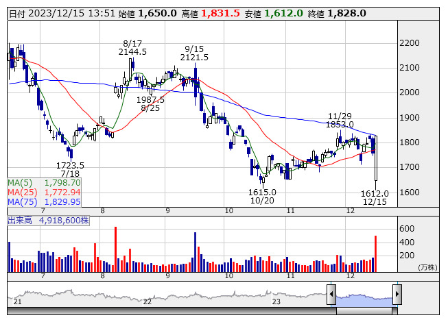 4666>は切り返して反発。前日に23年10月期の決算を発表している。営業利益は320億円で前期比54.7%増となったが、8-10月期は減益に転じ、市場予想は10億円強下振れたとみられる。24年10月期は350億円で同9.4%増の見通し、市場コンセンサスを20億円強下回っている。売り先行でスタートしたものの、年初来安値更新後は下げ達成感も強まり、24年10月期の復配計画を評価する動きも強まってきているようだ。