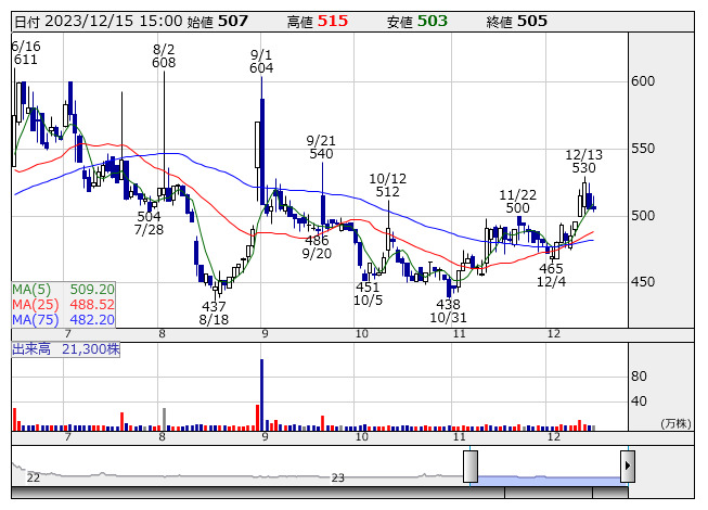 トゥルーD <日足> 「株探」多機能チャートよりTrue Data<4416>は14日、消費流通業界のデジタル化を促進するコンサルティング事業やDX研修を推進する今村商事と連携し、小売業向けAIツール「Potential Scan」の提供を開始することを発表。「Potential Scan」は、自社店舗の売上と市場全体との売上を比較したり、もっと売れそうなポテンシャルの高い商品を見つけたりすることで、売上アップにつながる伸びしろがどこにあるのかが簡単にわかる小売業向けAIツール。わずか数クリックで必要なデータが表示される簡便なダッシュボード機能と、もっと売れそうな商品をさがす商品ポテンシャルAI機能を搭載している。サービス開始は12月25日。