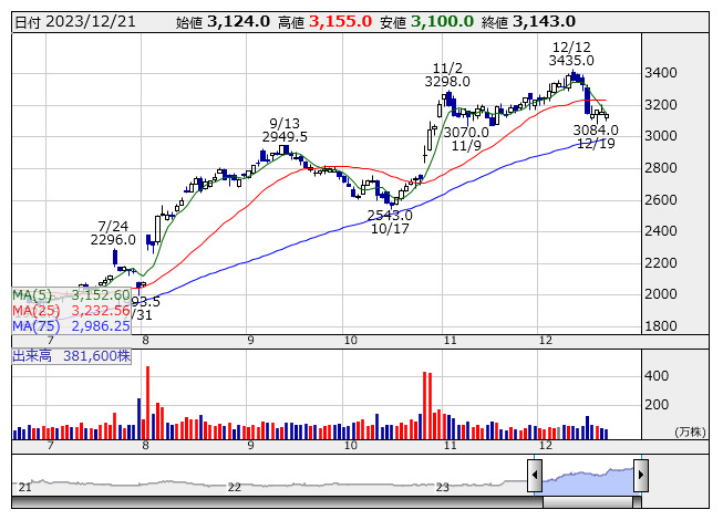山パン <日足> 「株探」多機能チャートより【注目スケジュール】