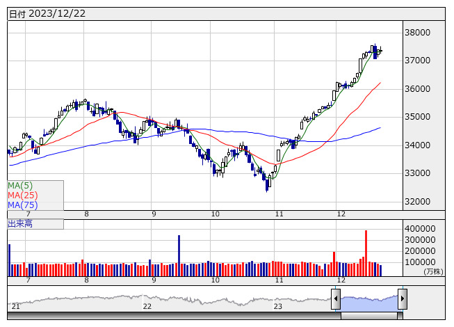 ただし、米国では2024年の早い段階で利下げに踏み切るとの見方が強まるなか、年末高が意識されやすい。市場参加者は限られるものの、先高期待から押し目買い意欲は強そうだ。日経平均は25日線での攻防を見せているが、同線での底堅さから、改めて11月20日に付けたバブル後の高値を捉えてくる相場展開となる可能性はあるだろう。そのため、25日線でのこう着感が強まる局面では、押し目狙いに向かわせよう。