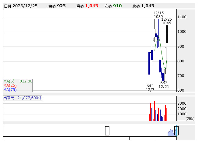 クオンタムS <2338> 1,271 -59 ( -4.4%) 21,400 ( 2,719) 24,200 ( 3,073)