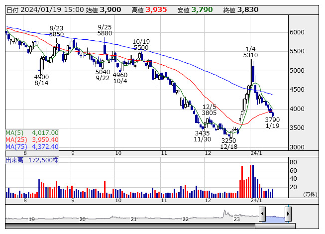 バンクオブイ <日足> 「株探」多機能チャートより■財務省 : 1月19日受付