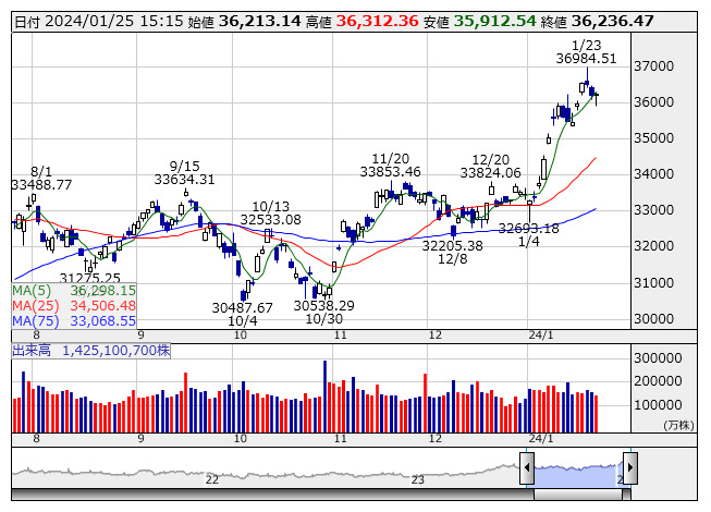 日経平均 <日足> 「株探」多機能チャートよりPTS市場全体、および日経平均構成銘柄の25日終値比の上昇率・下落率ランキングは以下のとおり。