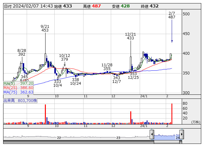 2024年02月07日14時41分 【材料】スリーエフ急伸、KDDIのローソンTOBで思惑物色広がる スリーエフ <日足> 「株探」多機能チャートより スリーエフ<7544>が急伸。KDDI<9433>が6日、ローソン<2651>の非公開化に向けてTOBを実施すると発表した。ポイント経済圏の拡大や、リアルとデジタルを融合したサービスの展開を目指す狙いだ。同日の大引け間際にこのTOBが報道で伝わると、ローソンと提携しているコンビニ中堅のスリーエフに思惑買いが集中。きょう7日も引き続き買われている。 スリーエフと同じくローソンと提携関係にあるポプラ<7601>にも物色が向かう場面があった。KDDIのローソンTOBを巡る思惑物色の流れが広がるなか、イオン<8267>傘下のコンビニ中堅ミニストップ<9946>にも短期資金が流入している。 出所:MINKABU PRESS