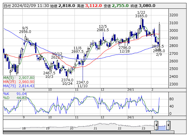 <3563> F&LC 3080 +254.5 ( +9.0%) 2960.9