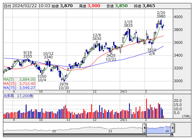 DTS <日足> 「株探」多機能チャートより■財務省 : 2月22日受付