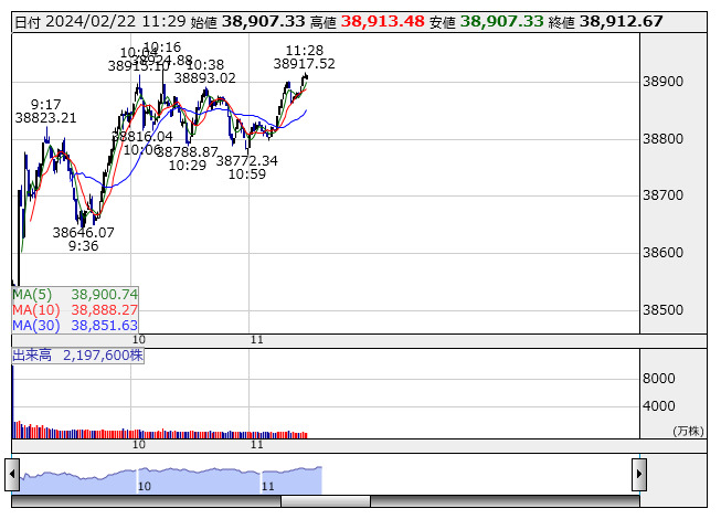 【市況】日経平均22日前引け=4日ぶり反発、651円高の3万8913円