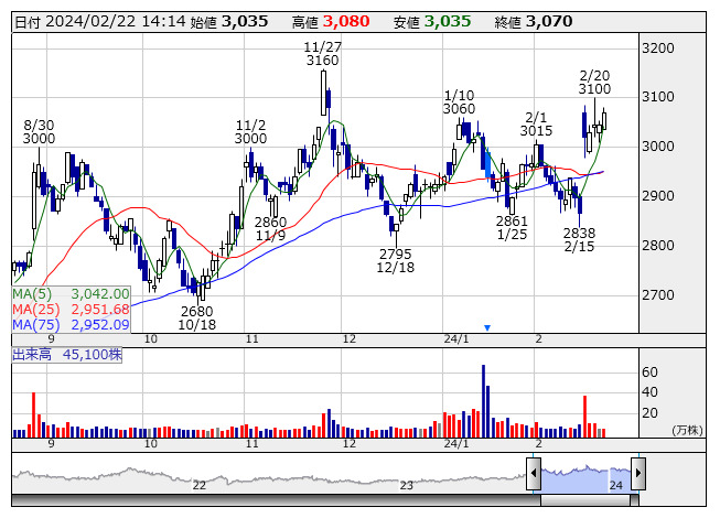 DyDo <日足> 「株探」多機能チャートより■2月26日~3月1日の決算発表銘柄(予定) ★は注目決算