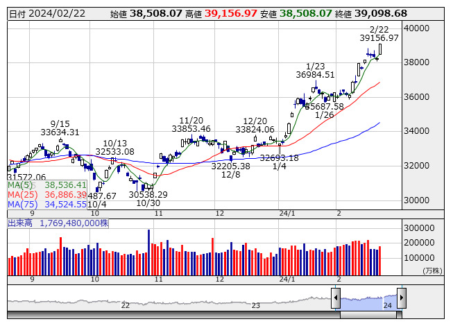 2024年02月26日08時46分 【市況】日経225先物:26日寄り付き=330円高、3万9450円 日経平均 <日足> 「株探」多機能チャートより 26日8時45分、大阪取引所の日経225先物期近2024年3月限は前営業日清算値比330円高の3万9450円で寄り付いた。前営業日の日経平均株価の現物終値3万9098.68円に対しては351.32円高。夜間取引の終値3万9430円に対しては20円高となっている。 株探ニュース