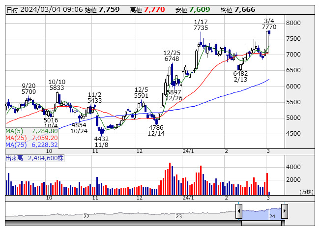 9. <6526> ソシオネクス 東証P 2,745 3930 ( +1.9 ) 半導体関連