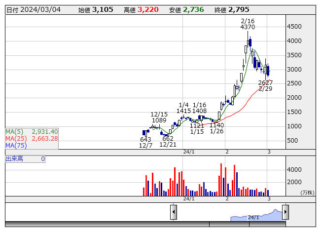 1日に発表した「1→3の株式分割を実施」が買い材料。