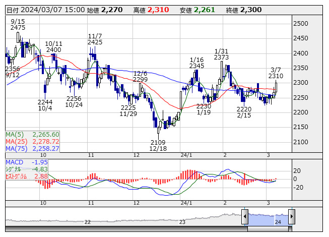 【特集】MACD【買いシグナル】低PBR 15社選出 <テクニカル特集> 3月7日版