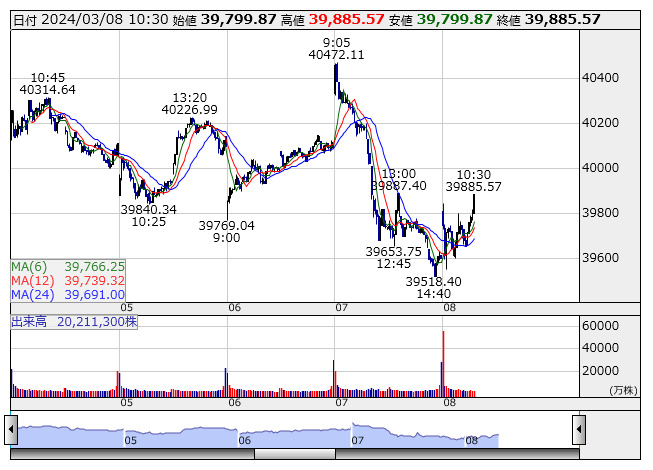 2024年03月08日10時35分 【市況】日経平均の上げ幅が300円突破 日経平均 <5分足> 「株探」多機能チャートより 日経平均株価の上げ幅が300円を突破。10時34分現在、302.26円高の3万9900.97円まで上昇している。 株探ニュース