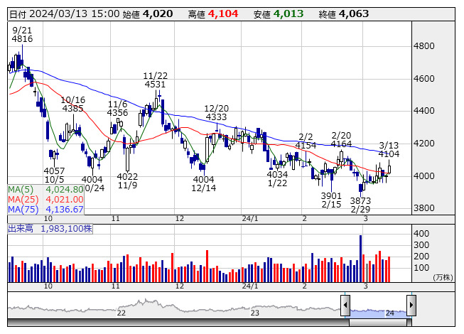 住友鉱 <日足> 「株探」多機能チャートより本特集では、テクニカル指標「移動平均線のゴールデンクロス」と企業の持つ株主資本(純資産)からみた株価指標で、理論上の解散価値を示す「PBR」に注目しました。プライム市場において、短期的な上昇トレンドに転換した可能性が高まった、5日と25日移動平均線がゴールデンクロスを本日示現した銘柄をピックアップ。その中からPBRがプライム市場平均(1.42倍)を下回る上値余地のあるとみられる12社を選び出しました。