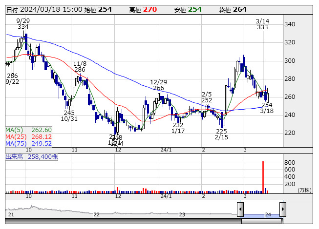 カイゼン <日足> 「株探」多機能チャートより■事業概要