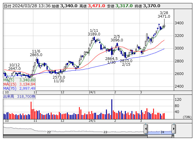 2024年03月28日13時36分 【材料】邦ガスは3日続伸、上限3.8%の自社株買いを好感 邦ガス <日足> 「株探」多機能チャートより 東邦ガス<9533>は3日続伸。この日昼ごろ、取得上限400万株(自己株式を除く発行済み株数の3.8%)、または100億円とする自社株買いの実施を発表した。期間は4月1日から9月30日まで。これが好感されている。 出所:MINKABU PRESS