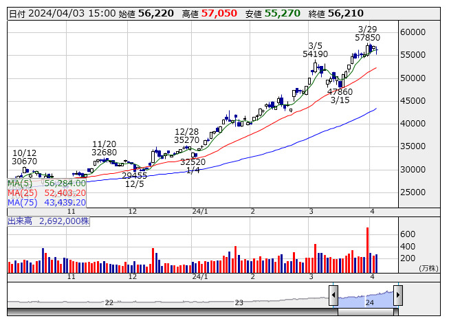 ディスコ <日足> 「株探」多機能チャートより■財務省 : 4月3日受付
