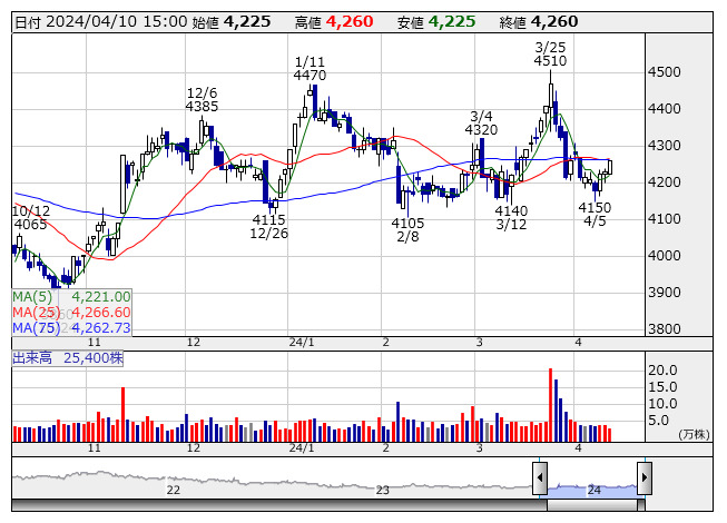 三洋化 <日足> 「株探」多機能チャートより三洋化成工業<4471>は9日、ポリウレタンの主原料のポリプロピレングリコール(PPG)とポリマーポリオール(POP)を価格改定すると発表した。