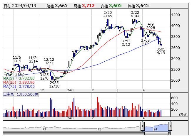 SBI <日足> 「株探」多機能チャートより(東証プライム上場 1651 銘柄対象)
