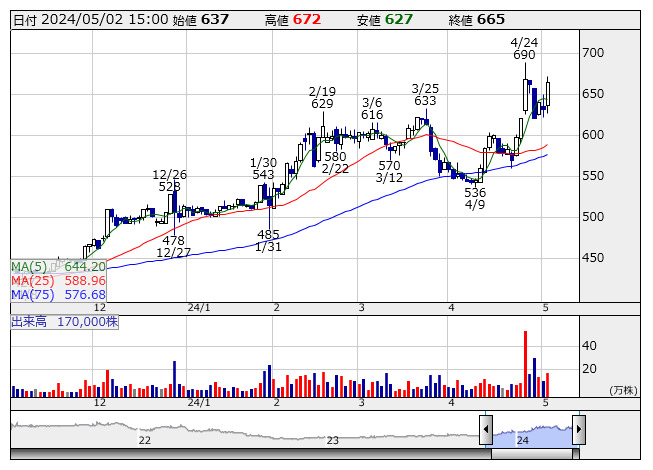 アツギ <日足> 「株探」多機能チャートより■財務省 : 5月2日受付