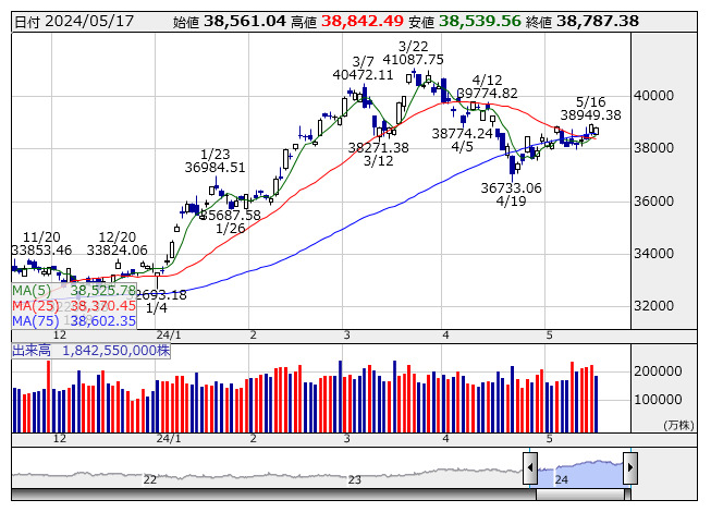 2024年05月18日08時05分 【市況】シカゴ日経平均先物 大取終値比 5円高 (5月17日) 日経平均 <日足> 「株探」多機能チャートよりシカゴ日経225先物 (円建て) 38745 ( +5 ) シカゴ日経225先物 (ドル建て) 38755 ( +15 ) ※( )は大阪取引所終値比 株探ニュース