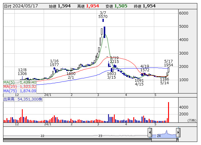 【材料】週間ランキング【値上がり率】 (5月17日)