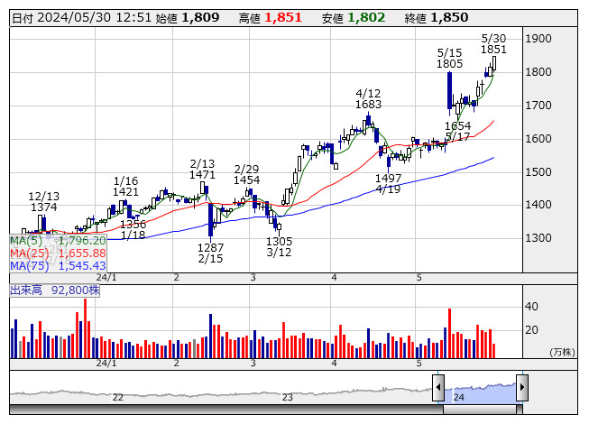 サカタINX <日足> 「株探」多機能チャートより■財務省 : 5月30日受付