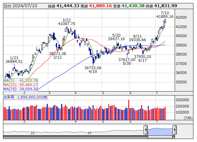 2024年07月11日07時56分 【市況】シカゴ日経平均先物 大取終値比 530円高 (7月10日) 日経平均 <日足> 「株探」多機能チャートよりシカゴ日経225先物 (円建て) 42470 ( +530 ) シカゴ日経225先物 (ドル建て) 42510 ( +570 ) ※( )は大阪取引所終値比 株探ニュース