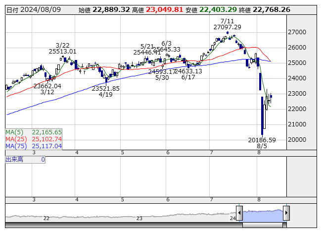 2024年08月13日08時46分 【市況】JPX日経400先物:13日寄り付き=205ポイント高、2万2975ポイント JPX日経400 <日足> 「株探」多機能チャートより 13日8時45分、JPX日経インデックス400先物期近2024年9月限は前週末清算値比205ポイント高の2万2975ポイントで寄り付いた。前週末のJPX日経インデックス400の現物終値2万2768.26ポイントに対しては206.74ポイント高。夜間取引の終値2万2815ポイントに対しては160ポイント高となっている。 株探ニュース