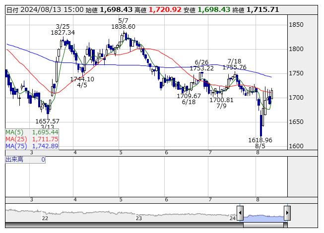 2024年08月13日15時17分 【市況】東証REIT指数先物:13日清算値=14ポイント高、1698.5ポイント REIT指数 <日足> 「株探」多機能チャートより 13日15時15分、東証REIT指数先物期近2024年9月限は前週末清算値比14ポイント高の1698.5ポイントで取引を終えた。出来高は237枚だった。この日の東証REIT指数の現物終値1715.71ポイントに対しては17.21ポイント安。 株探ニュース
