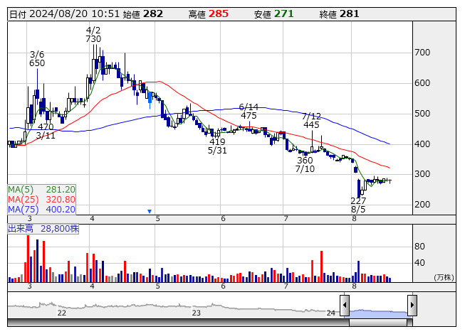 GFA <日足> 「株探」多機能チャートより8月20日に配信した当記事も取り消します。
