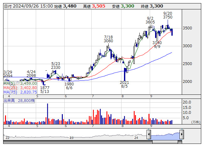 網屋 <日足> 「株探」多機能チャートより■網屋<4258>の事業概要