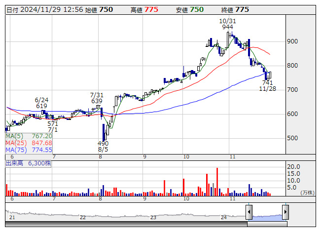 2024年11月29日12時57分 【材料】スタメンが上げ幅を拡大、「TUNAG」利用中企業数が1000社を突破 スタメン <日足> 「株探」多機能チャートより スタメン<4019>が上げ幅を拡大している。午後0時15分ごろ、同社が開発・提供する従業員の定着率向上や情報共有の促進などを実現するエンゲージメントプラットフォーム「TUNAG(ツナグ)」に関して、利用中企業数が1000社を突破したと発表しており、好材料視されている。 出所:MINKABU PRESS