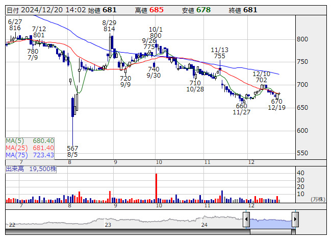 ハークスレイ <日足> 「株探」多機能チャートより■ハークスレイ<7561>の事業概要