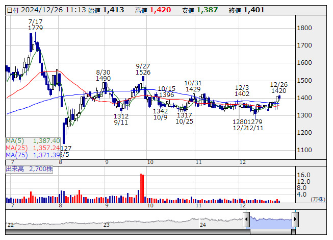 フォーバル <日足> 「株探」多機能チャートより■フォーバル<8275>の事業概要