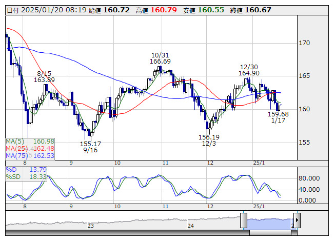 ユーロ/円 <日足> Slowストキャス 「株探」多機能チャートよりユーロ・ドルは、1.0341ドル(2017/01/03)まで下落したが、1.2537ドル(2018/02/18)まで上昇。その後、0.9536(2022/09/28)まで反落したが、2024年にかけて1.1ドル台まで戻している。ユーロ・円は英国民投票で欧州連合(EU)からの離脱が決定し、一時109円57銭(2016/06/24)まで急落。その後137円50銭(2018/2/2)まで買われたあと、長期間伸び悩んだが、日欧金利差の拡大や円安・ドル高の進行を受けて175円16銭(2024/7/10)まで上昇。欧州中央銀行(ECB)は利下げを慎重に進める方針だが、日本銀行は今月開催の金融政策決定会合で追加利上げを決める可能性があるため、リスク選好的なユーロ買い・円売りがただちに強まる可能性は低いとみられる。
