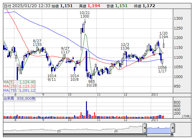 IDOM <日足> 「株探」多機能チャートより