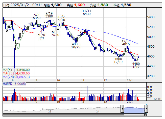 住友精化 <日足> 「株探」多機能チャートより
