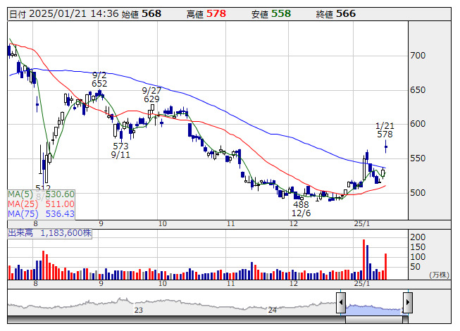 2025年01月21日14時36分 【材料】タムラ製---大幅続伸、株価下落で割安感として米系証券が格上げ タムラ <日足> 「株探」多機能チャートより タムラ製<6768>は大幅続伸。モルガン・スタンレーMUFG証券では投資判断を「イコールウェイト」から「オーバーウェイト」に格上げ、目標株価は670円としている。業績見通しに大きな変更はないものの、半年ほどの株価下落で割安感が強まったと評価のもよう。また、上半期決算説明会において、26年3月期からスタートする次期中期計画の伏線、現状の低PBRの株価水準に対する言及などがあれば、カタリストになると指摘している。 《ST》 提供:フィスコ