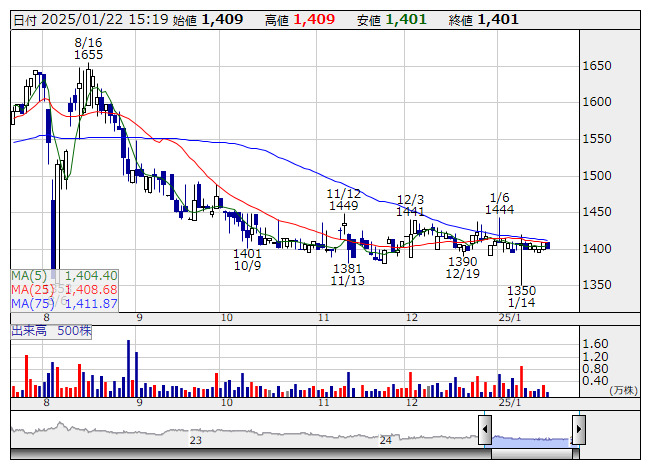 応用技術 <日足> 「株探」多機能チャートより■財務省 : 1月22日受付