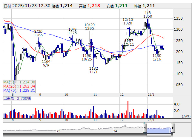 橋本総業HD <日足> 「株探」多機能チャートより■事業概要