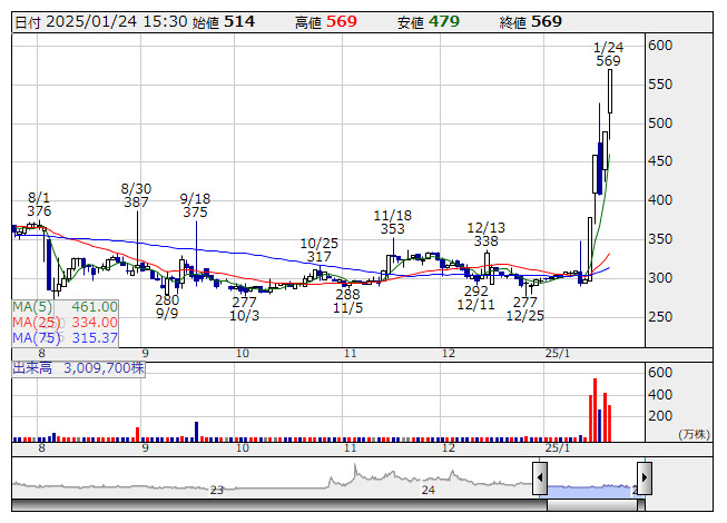 【材料】週間ランキング【値上がり率】 (1月24日)
