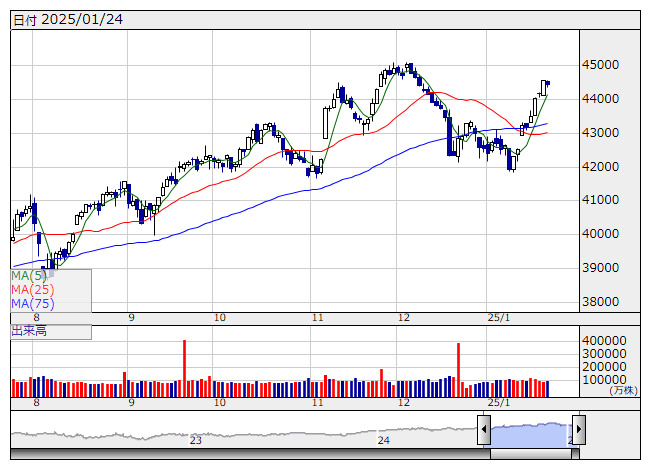 NYダウ <日足> 「株探」多機能チャートよりボーイング<BA>やハネウェル<HON>が冴えない展開。アメリカン・エキスプレス<AXP>やエクソン・モービル<XOM>が軟調に推移した。半面、ウォルト・ディズニー<DIS>やウォルマート<WMT>がしっかり。イーライ・リリー<LLY>が買われ、トゥイリオ<TWLO>が急伸した。