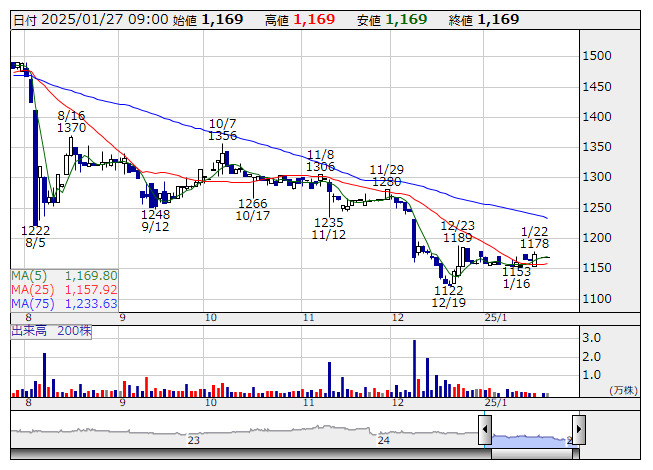 ミロク <日足> 「株探」多機能チャートより■財務省 : 1月27日受付