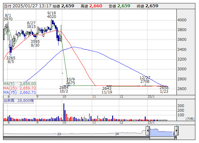 ティーガイア <日足> 「株探」多機能チャートより■財務省 : 1月27日受付