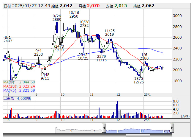 ハッチワーク <日足> 「株探」多機能チャートより■財務省 : 1月27日受付