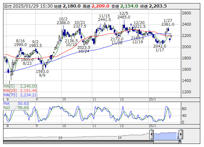 <6525> コクサイエレ 2237 +67 ( +3.1%) 2225.4